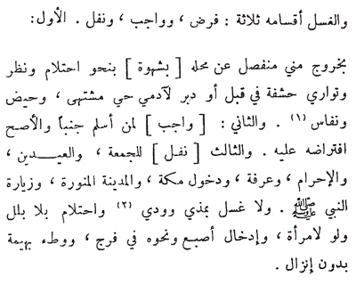 Translation 1) fard It is fard after the exiting of semen from the private part in a state of desire, for example after wet dreams and intercourse (whether it be anal or vaginal) and after completion of the menstrual cycle and completion of postpartum bleeding. It is wajib for a person in a state of major ritual impurity before converting to Islam. It is praiseworthy: 1) before